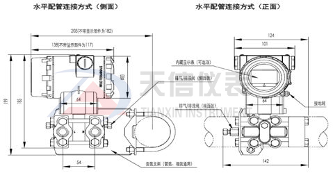 2、在蒸汽管道上取压时,应在管道的侧面安装引压管;