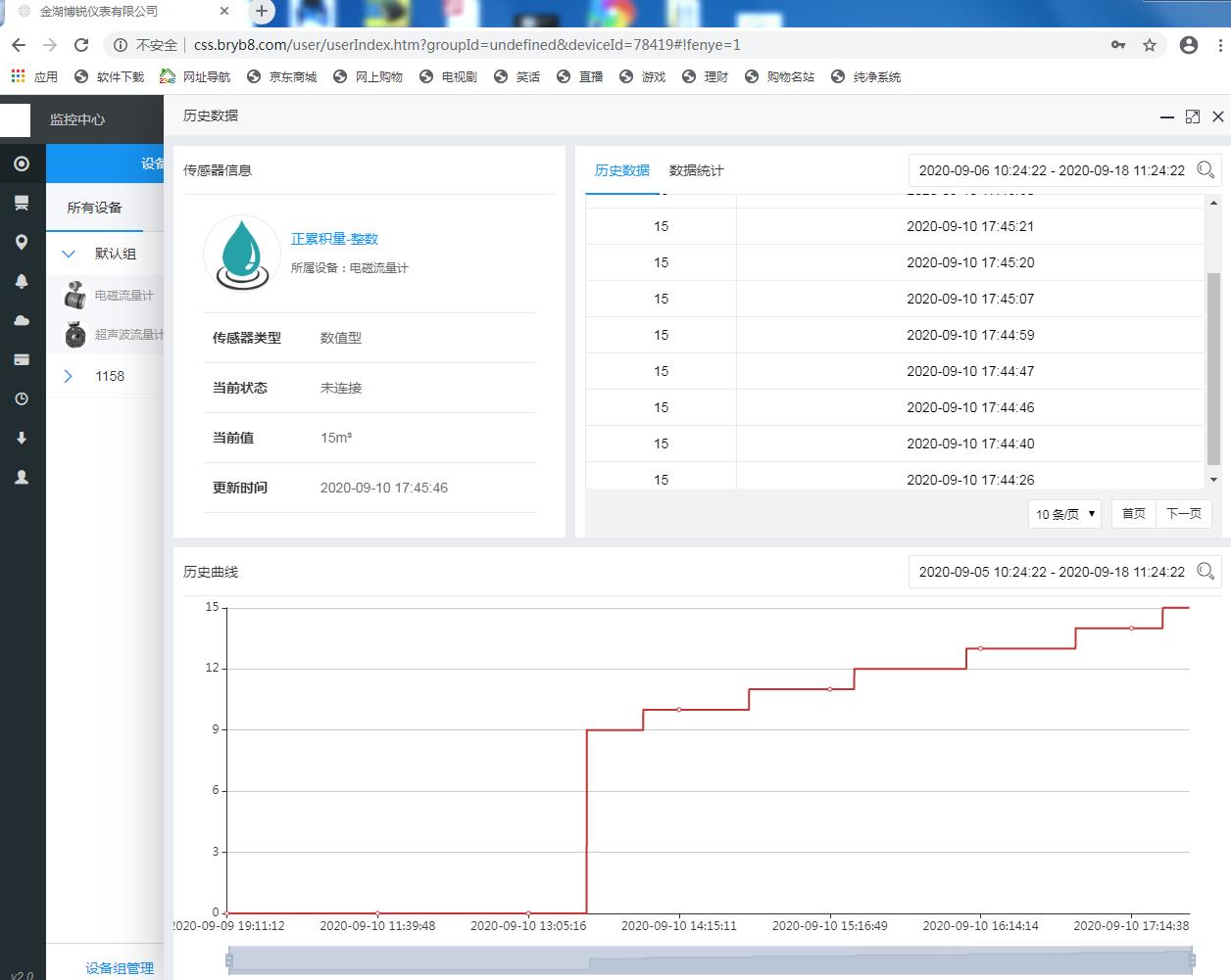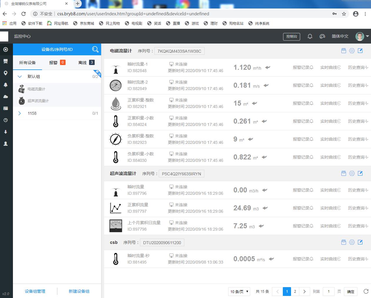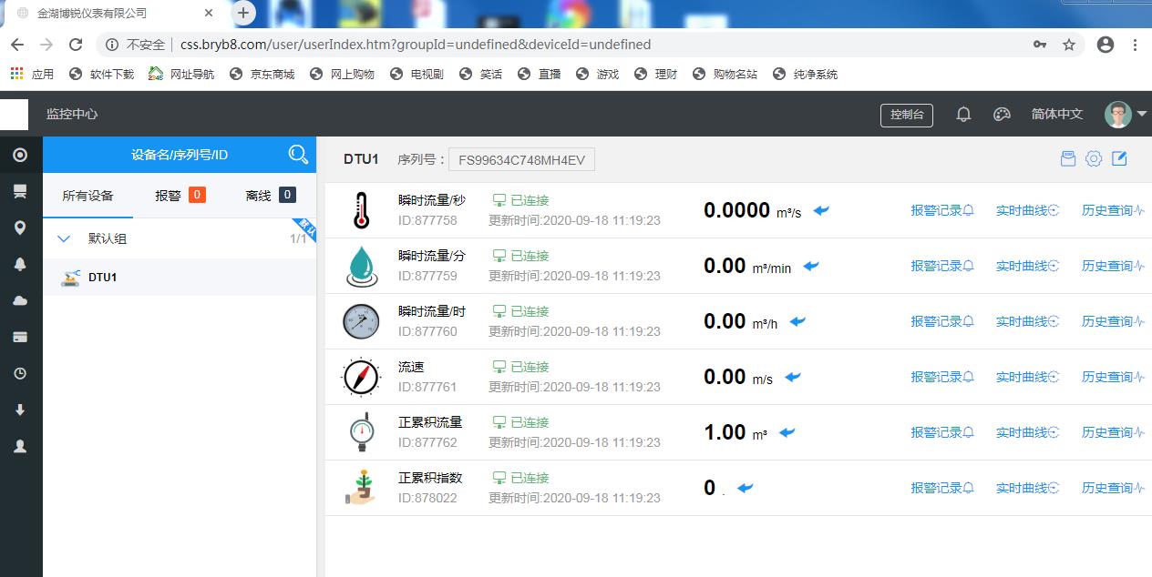 点击左侧“监控中心”,查看所有设备连接状态以及数据上传实况