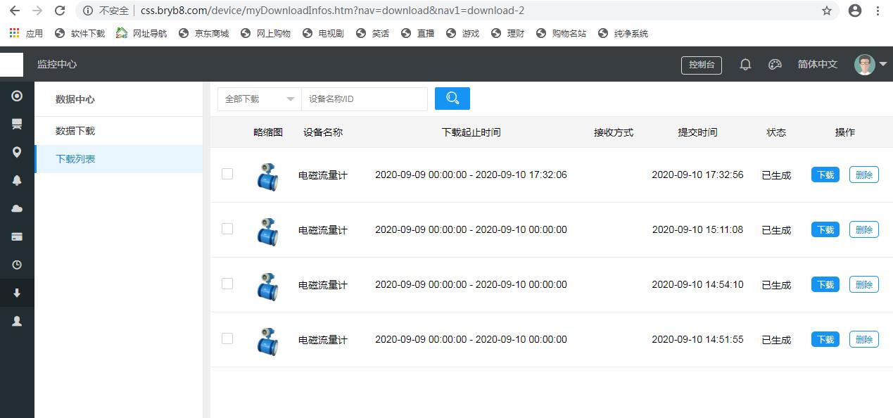 7.进入“数据中心-下载列表”点击右侧“下载”,可以将数据直接下载到本地电脑