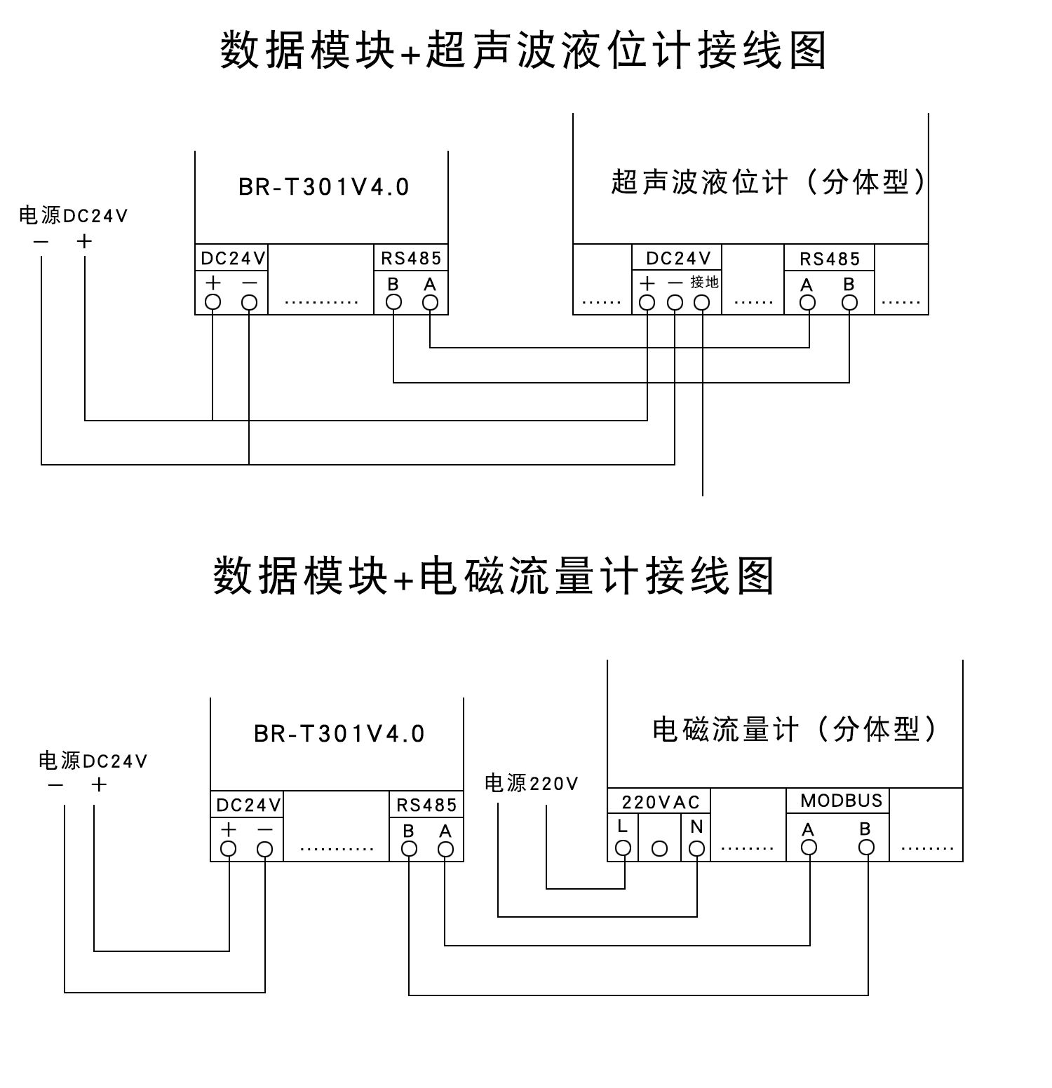 硬件连接(博锐数据上传模块BR-T301V4.0 + 流量计、液位计等)